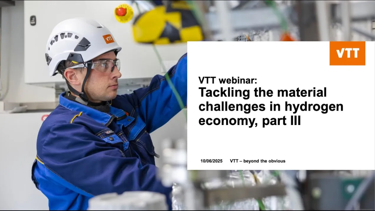 You can watch the webinar "Tackling the material challenges in hydrogen economy – VTT ProperScan part llI" on this page. This webinar covers VTT scientists' insights about hydrogen related material challenges and how VTT ProperScan can help you make right choices and avoid material failures resulting in costly down-time.