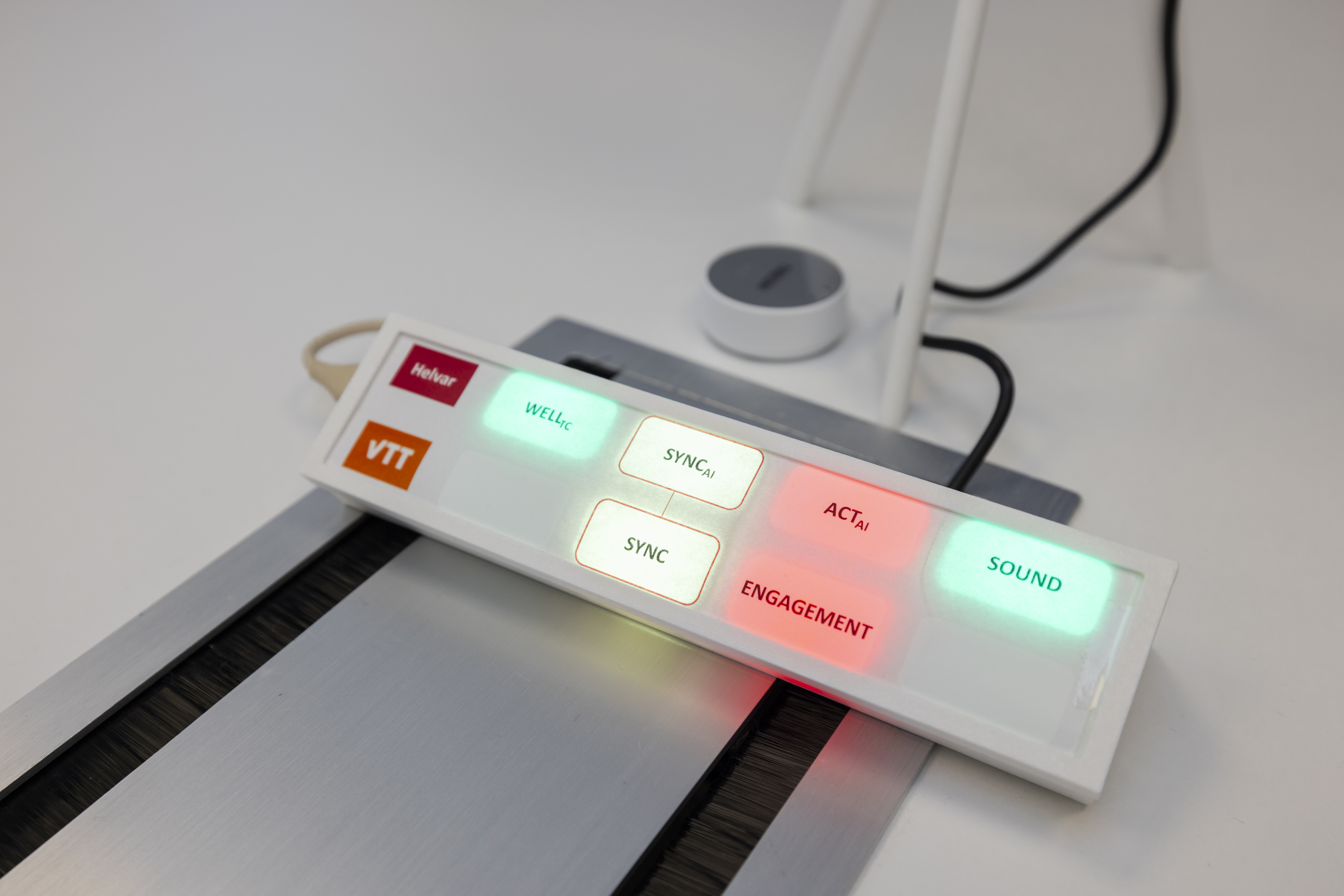 Helvar's technology analyses environmental conditions such as lighting, air quality, and presence data and communicates to meeting participants through light colours how the meeting is progressing.
