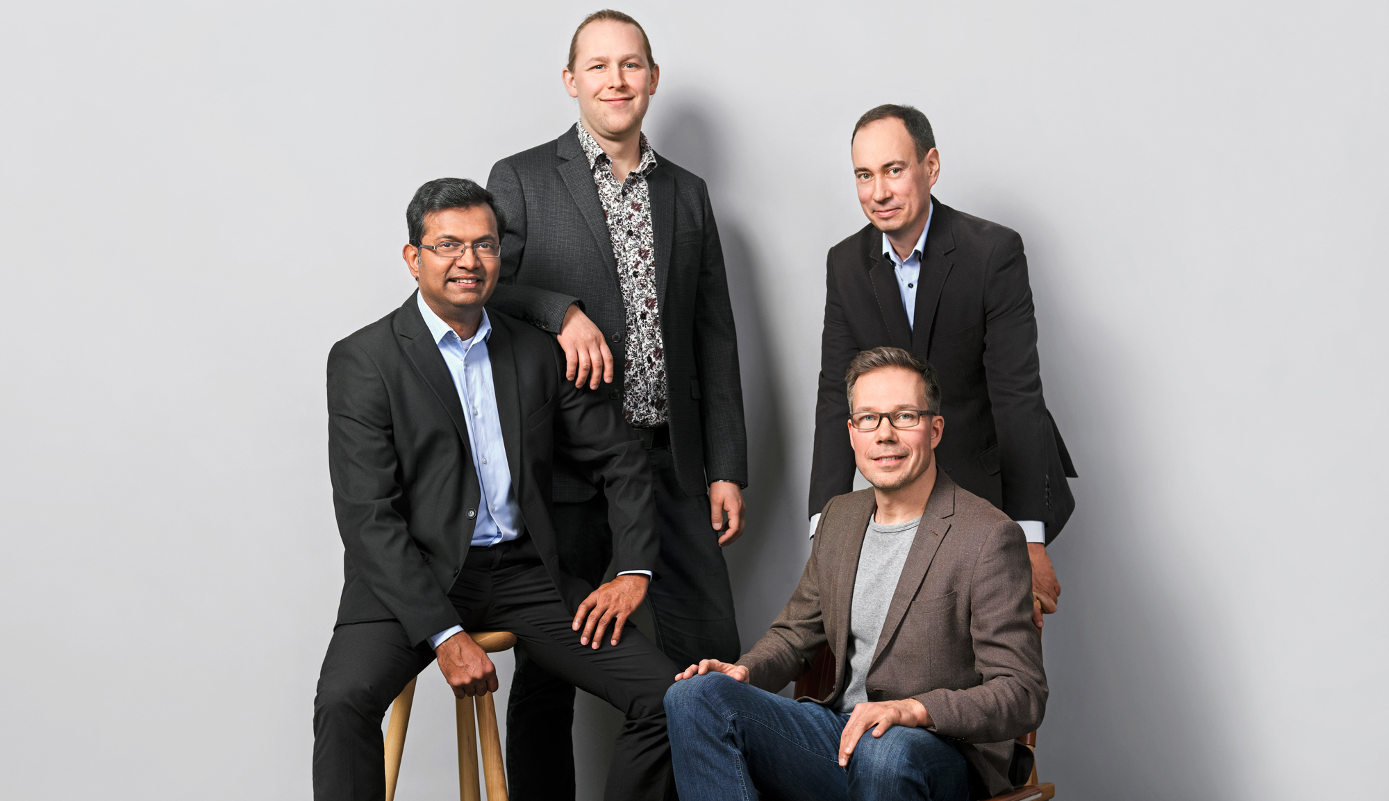 - SemiQon team from left: Himadri Majumdar and Mika Prunnila (sitting), Janne Lehtinen and Markku Kainlauri. (Photo source: SemiQon)